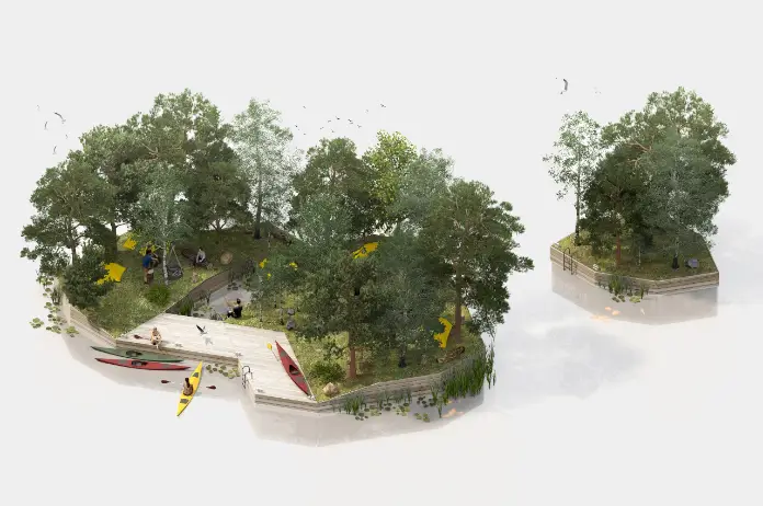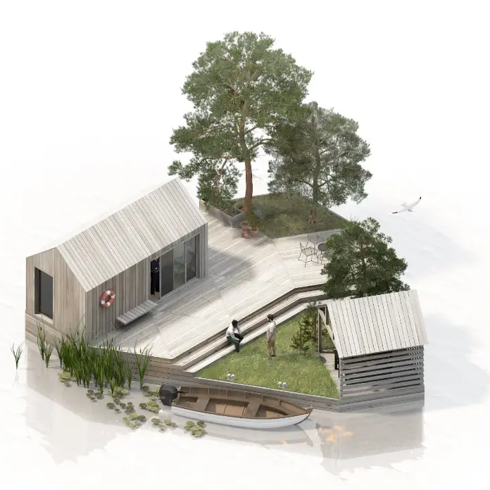 Algunas personas ya están fantaseando con establecer colonias en la Luna y Marte. Sin embargo, apenas hemos comenzado a entender y conquistar nuestros propios mares y océanos. Es posible que ya estemos dañando estos cuerpos de agua debido a la negligencia. Una gran parte de la extensión marítima del planeta sigue sin ser explorada. Con suerte, podemos ser más inteligentes sobre cómo usamos este recurso invaluable. Especialmente al construir casas debajo o encima de nuestras aguas. Numerosas ideas han surgido sobre cómo construir casas y comunidades flotantes. Land on Water es un concepto sostenible que no solo respeta el medio marino, sino que también crea hábitats potenciales para las criaturas del mar. Aunque requiere más pensamiento y recursos, sería más fácil si los edificios acuáticos usaran materiales y métodos tradicionales.