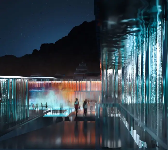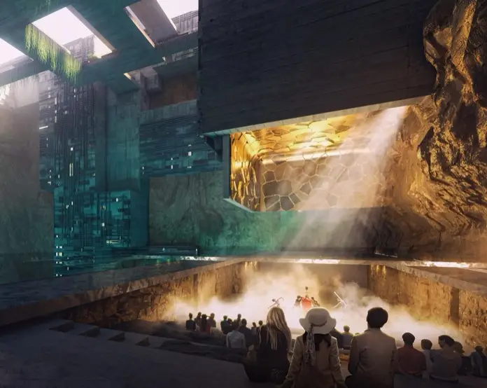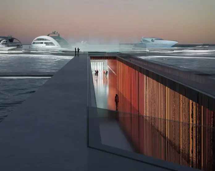 Para acceder a Aquellum, los visitantes abordarán un «buque especialmente diseñado» que viajará por un canal subterráneo oculto, desembocando en una plaza abierta bajo el agua. Este innovador enfoque crea una experiencia de llegada sin precedentes, sumergiendo a los visitantes en el diseño único del edificio.