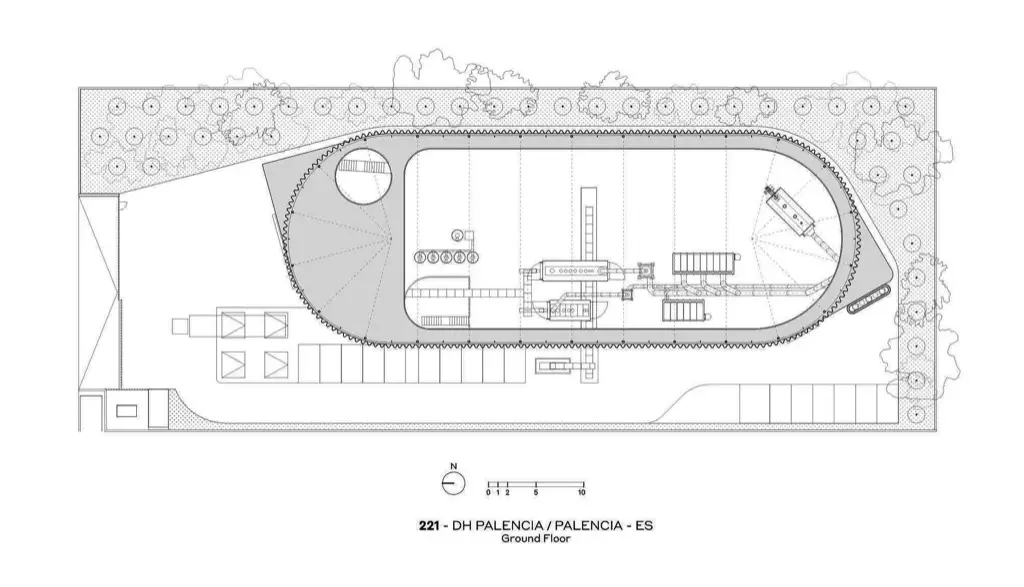 La central térmica de Palencia ha sido diseñada por FRPO en colaboración con DH EcoEnergías. Este proyecto consiguió (ex-aequo) el Premio FAD Arquitectura 2024.